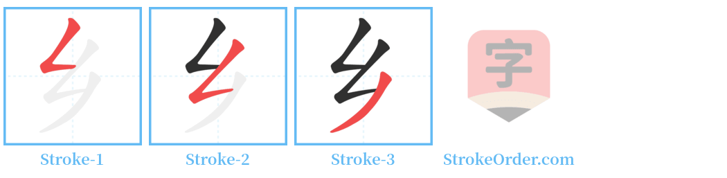 Watch the video of writing the Chinese character "乡", learn the correct stroke order (笔顺) of the character "乡", and master the standard way of writing the character "乡".