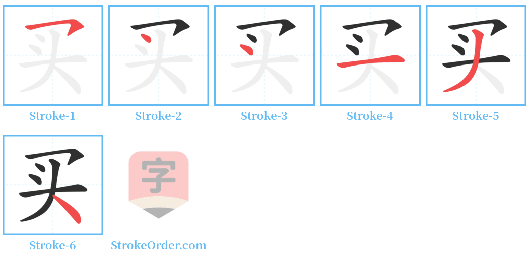 Watch the video of writing the Chinese character "买", learn the correct stroke order (笔顺) of the character "买", and master the standard way of writing the character "买".