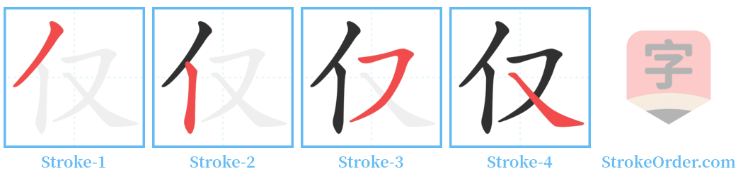 Watch the video of writing the Chinese character "仅", learn the correct stroke order (笔顺) of the character "仅", and master the standard way of writing the character "仅".