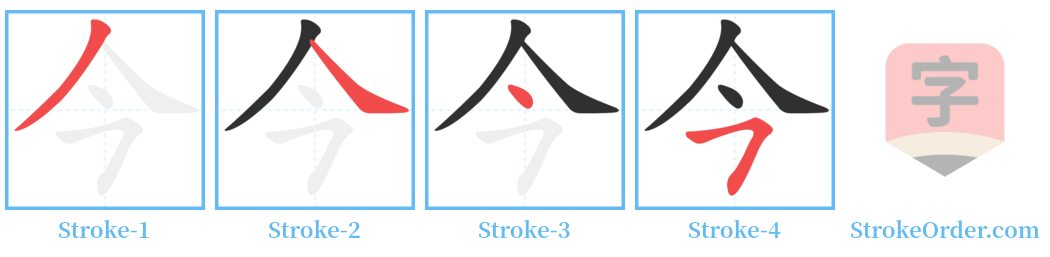 Watch the video of writing the Chinese character "今", learn the correct stroke order (笔顺) of the character "今", and master the standard way of writing the character "今".