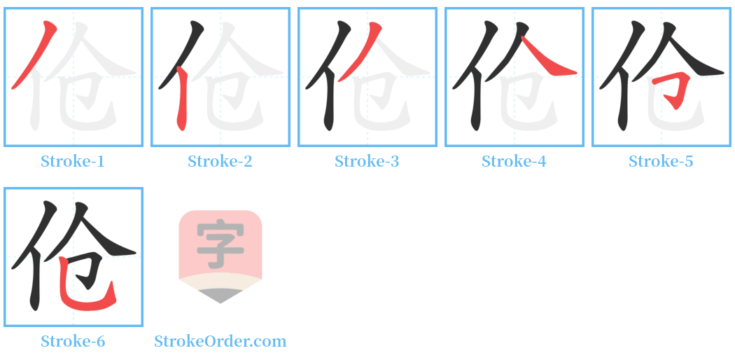 Step-by-Step Handwriting Guide for 伧