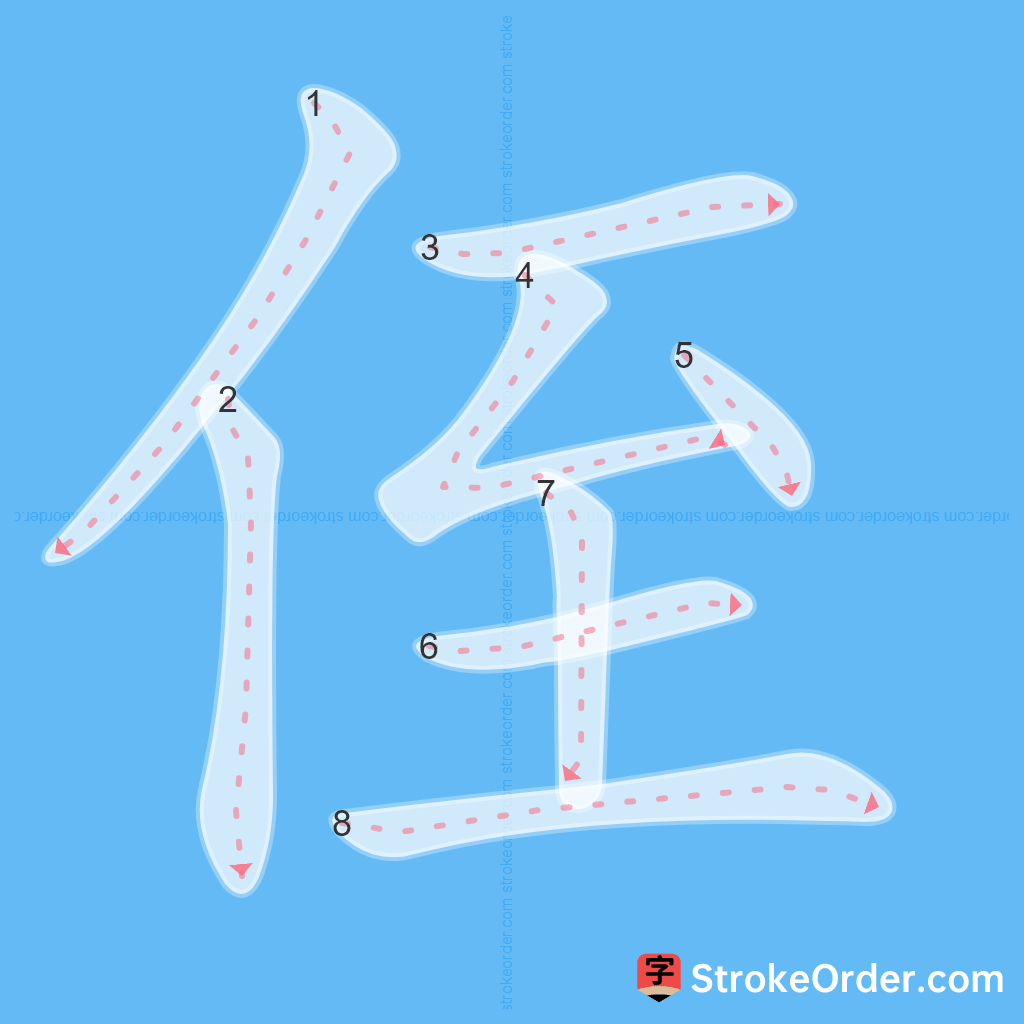 Watch the video of writing the Chinese character "侄", learn the correct stroke order (笔顺) of the character "侄", and master the standard way of writing the character "侄".