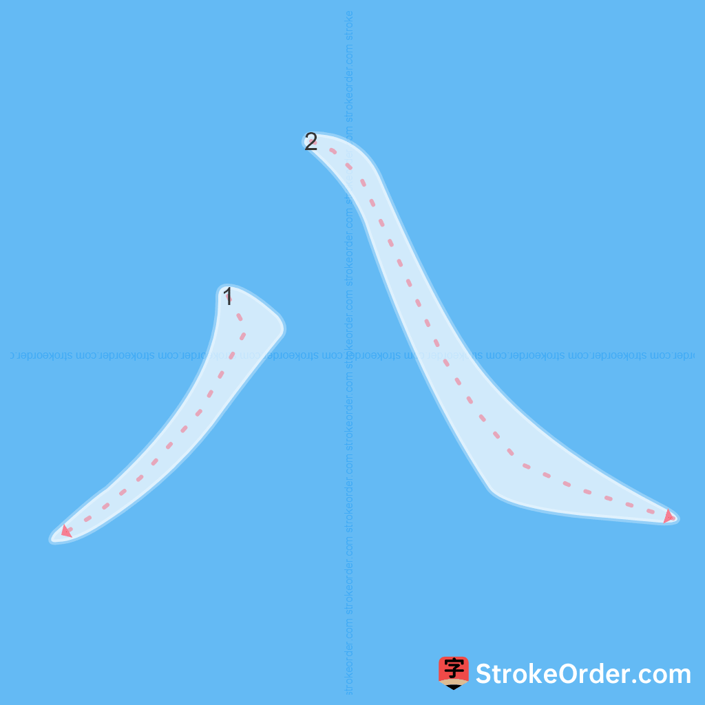 Watch the video of writing the Chinese character "八", learn the correct stroke order (笔顺) of the character "八", and master the standard way of writing the character "八".
