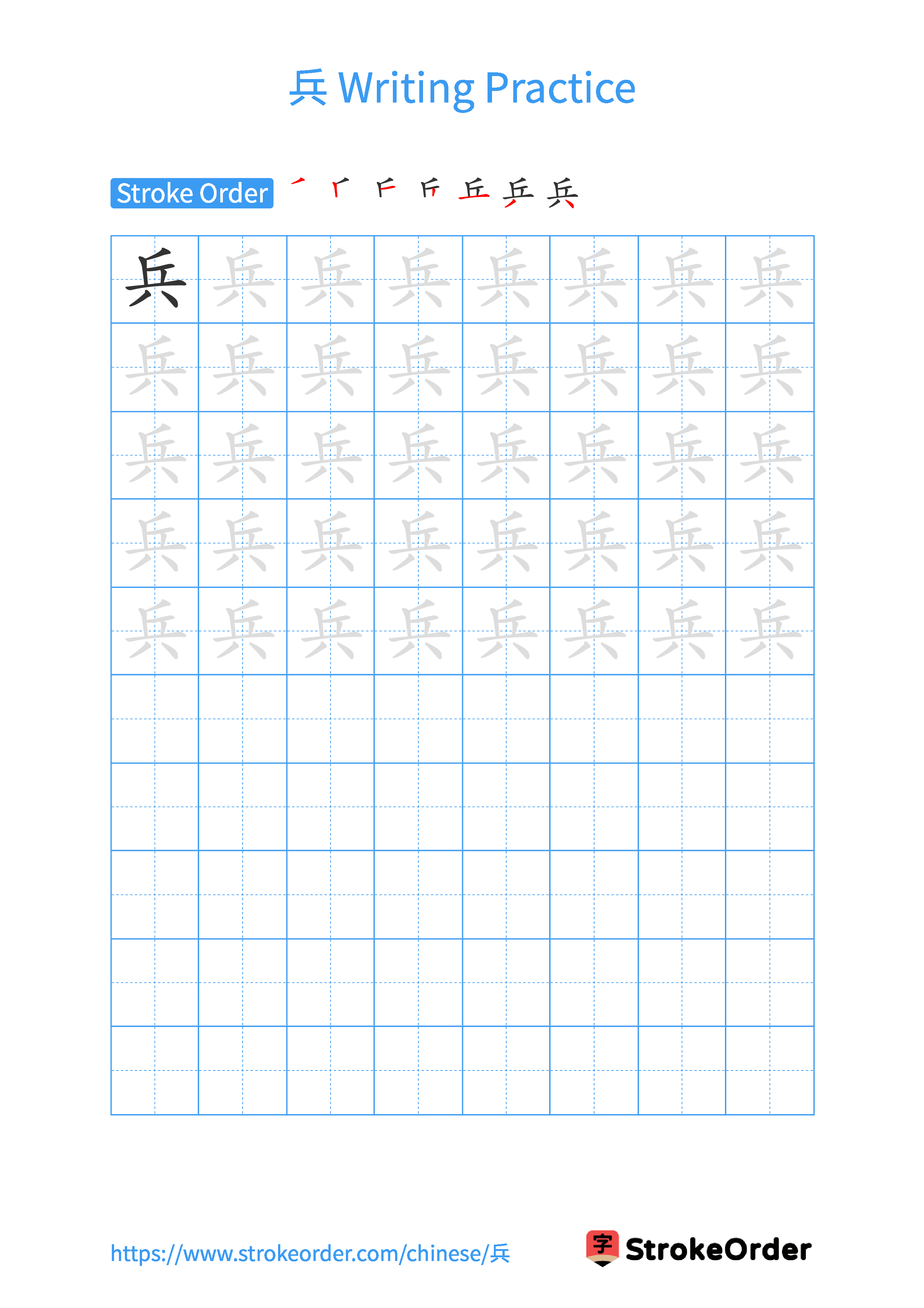 Free Printable Handwriting Practice with Stroke Order: 兵