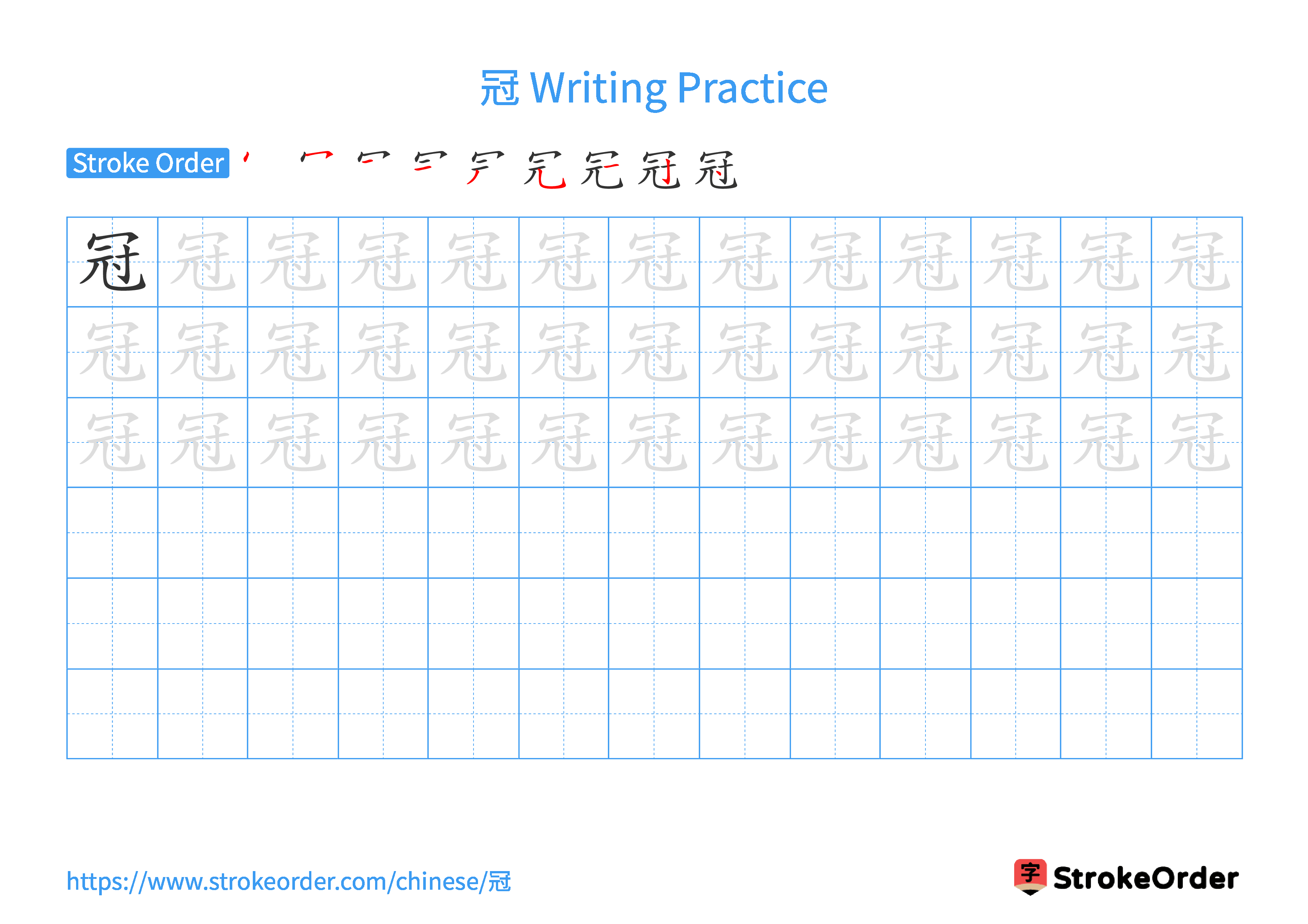 Free Printable Handwriting Practice with Stroke Order: 冠