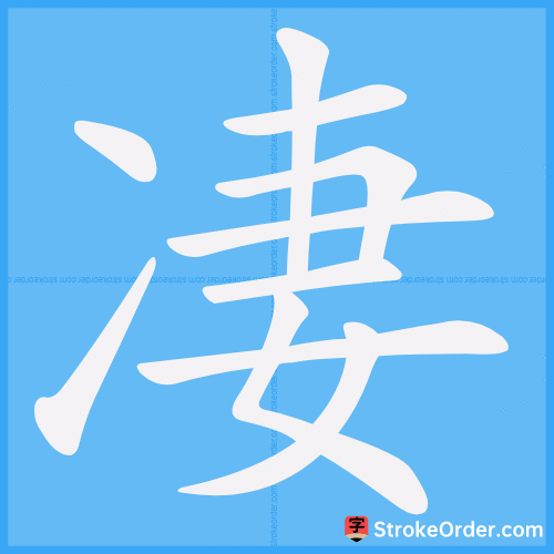 Watch the video of writing the Chinese character "凄", learn the correct stroke order (笔顺) of the character "凄", and master the standard way of writing the character "凄".