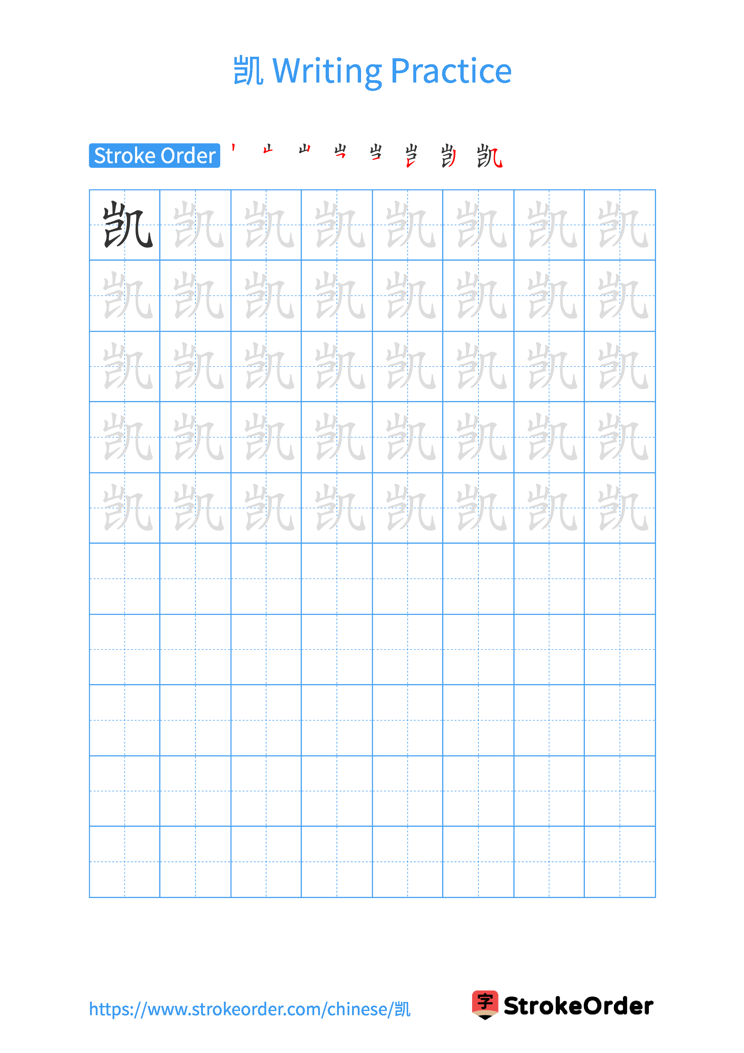 Free Printable Handwriting Practice with Stroke Order: 凯