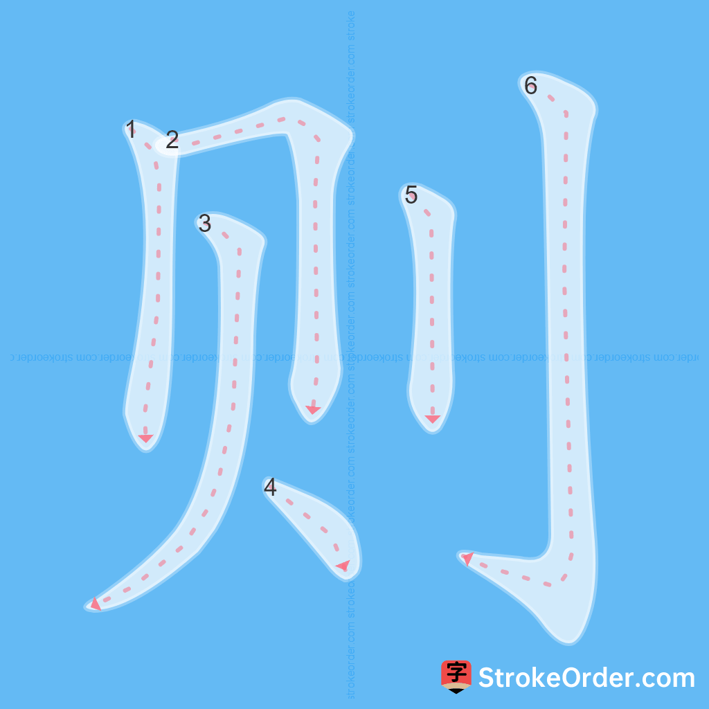 Watch the video of writing the Chinese character "则", learn the correct stroke order (笔顺) of the character "则", and master the standard way of writing the character "则".