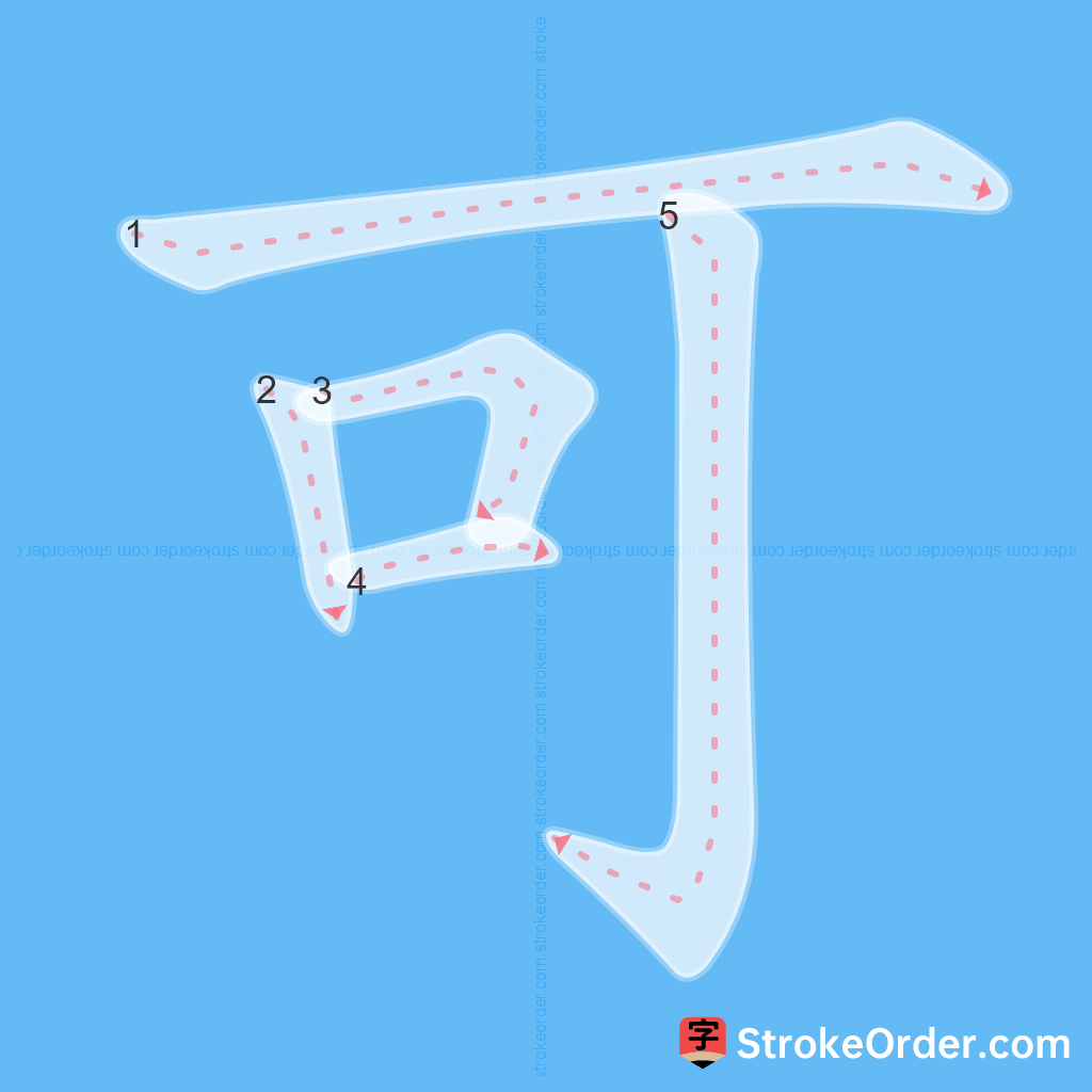 Watch the video of writing the Chinese character "可", learn the correct stroke order (笔顺) of the character "可", and master the standard way of writing the character "可".