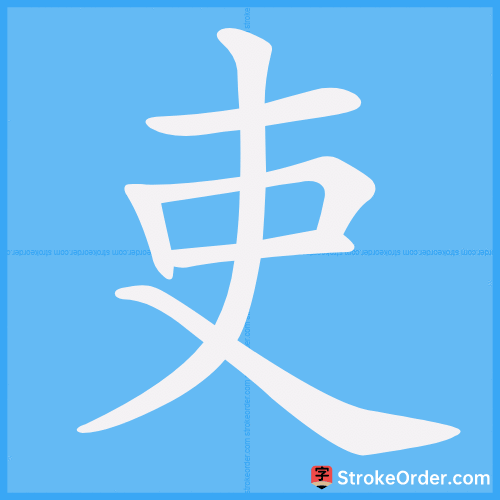Watch the video of writing the Chinese character "吏", learn the correct stroke order (笔顺) of the character "吏", and master the standard way of writing the character "吏".