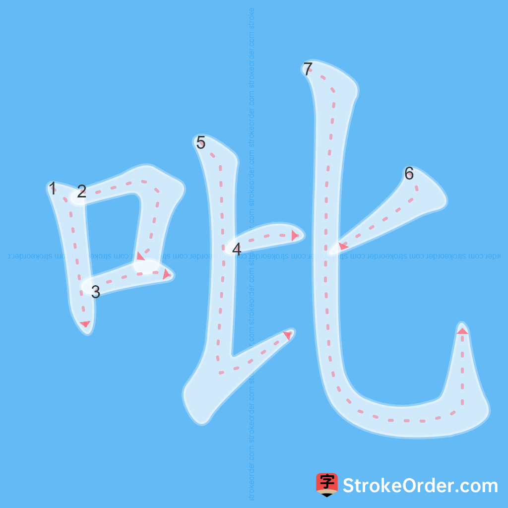 Watch the video of writing the Chinese character "吡", learn the correct stroke order (笔顺) of the character "吡", and master the standard way of writing the character "吡".