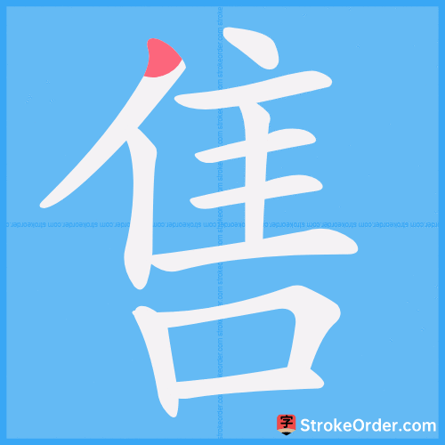 Watch the video of writing the Chinese character "售", learn the correct stroke order (笔顺) of the character "售", and master the standard way of writing the character "售".