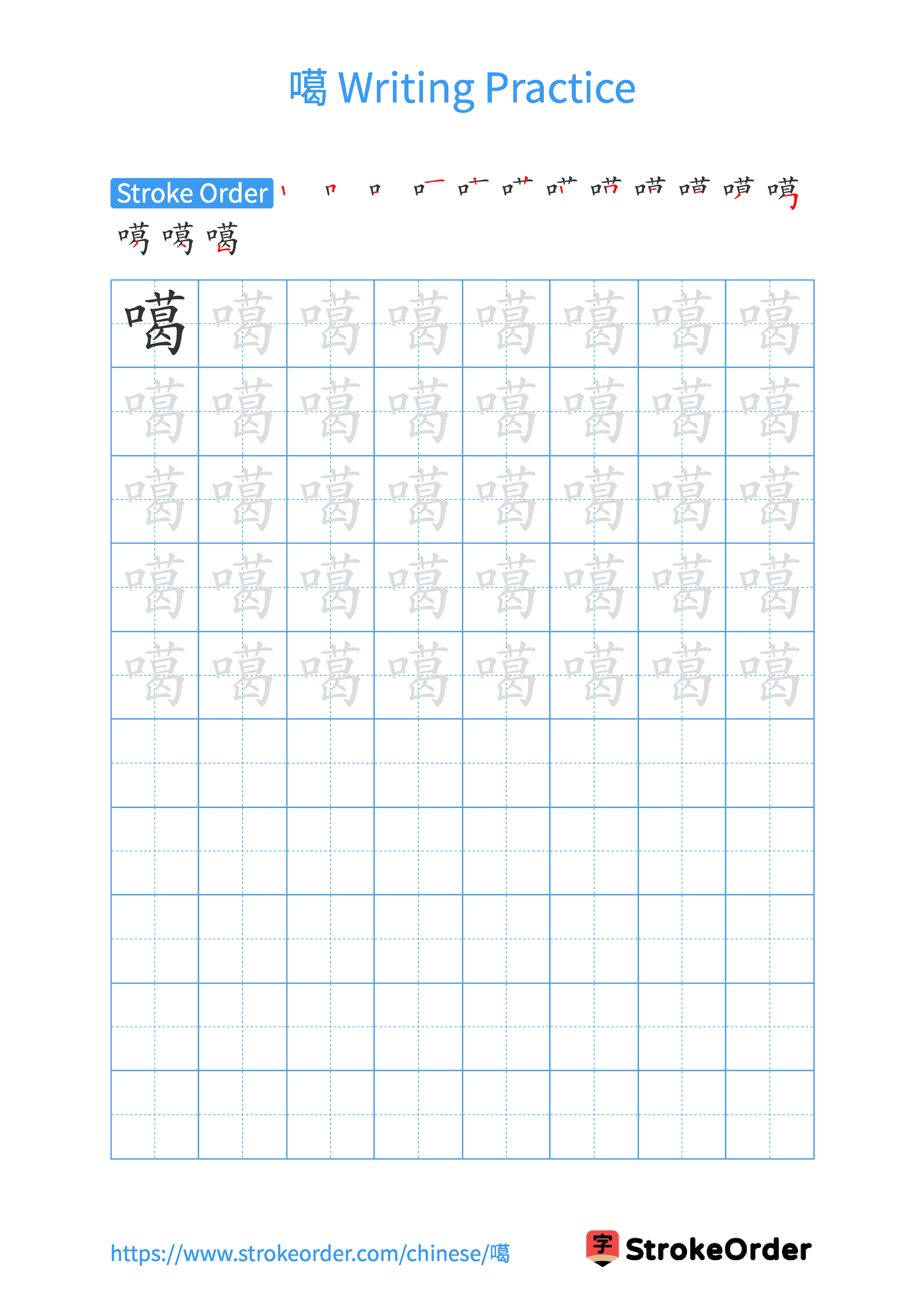 Free Printable Handwriting Practice with Stroke Order: 噶