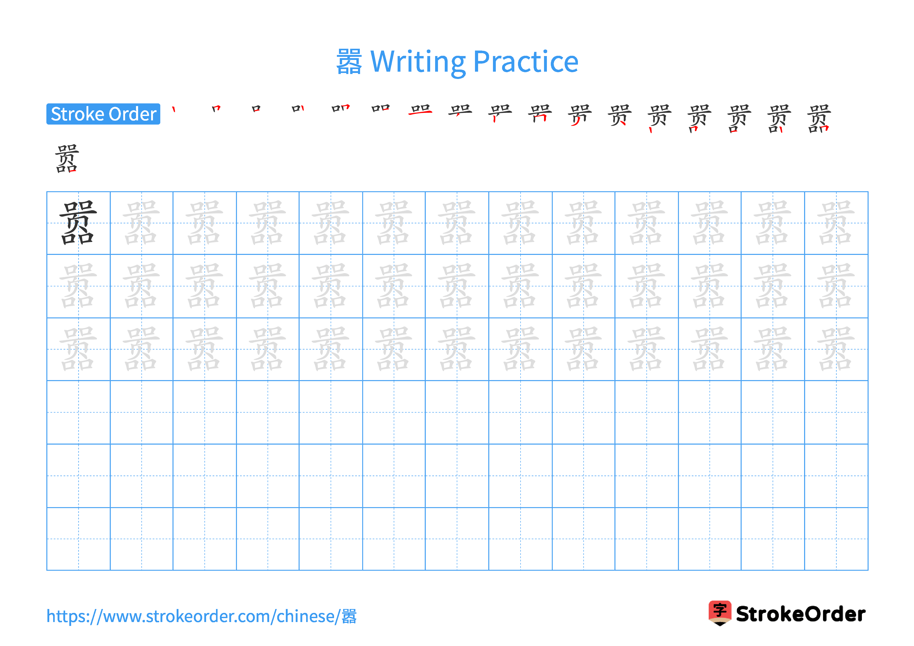 Free Printable Handwriting Practice with Stroke Order: 嚣
