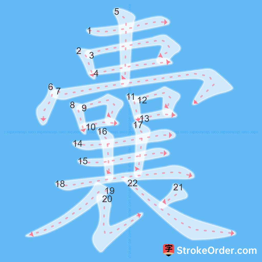 Watch the video of writing the Chinese character "囊", learn the correct stroke order (笔顺) of the character "囊", and master the standard way of writing the character "囊".