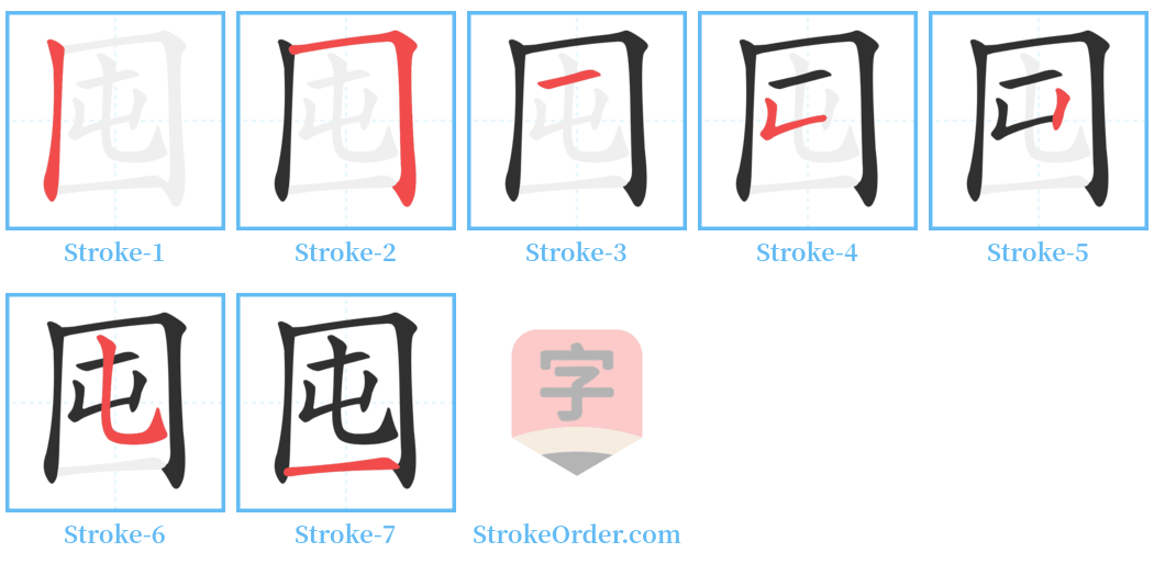 Free Printable Handwriting Practice with Stroke Order: 囤