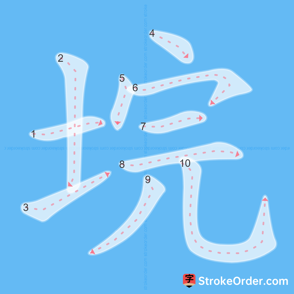 Watch the video of writing the Chinese character "垸", learn the correct stroke order (笔顺) of the character "垸", and master the standard way of writing the character "垸".