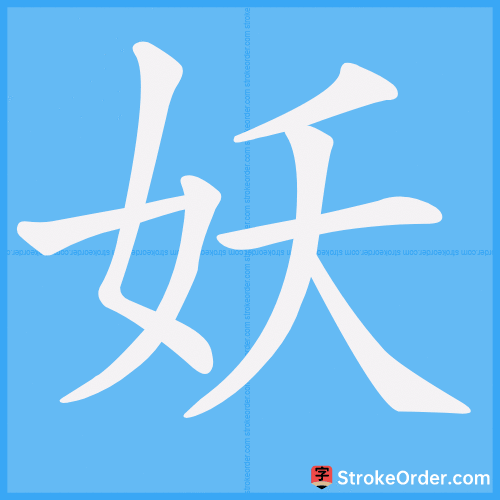 Watch the video of writing the Chinese character "妖", learn the correct stroke order (笔顺) of the character "妖", and master the standard way of writing the character "妖".