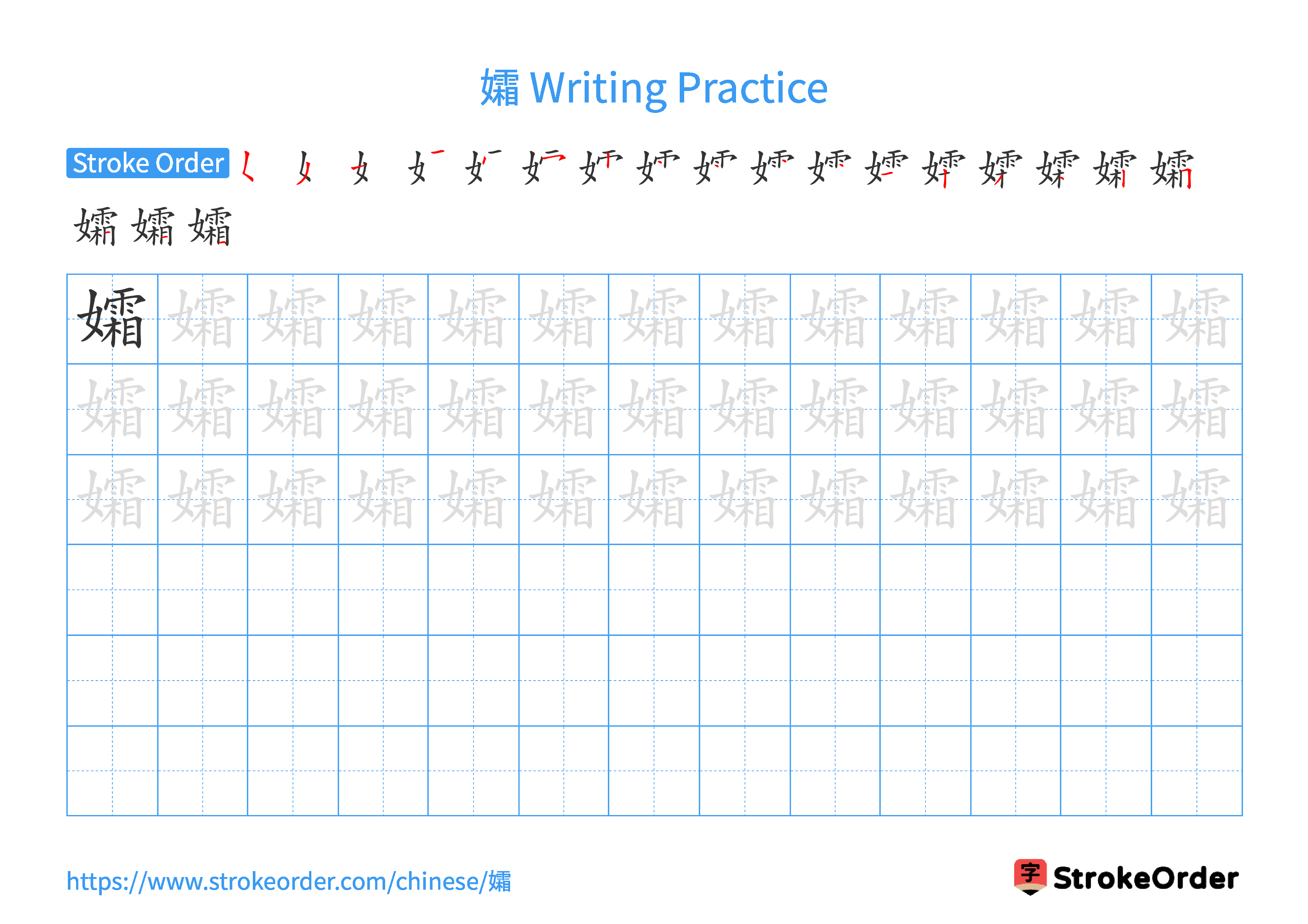Free Printable Handwriting Practice with Stroke Order: 孀
