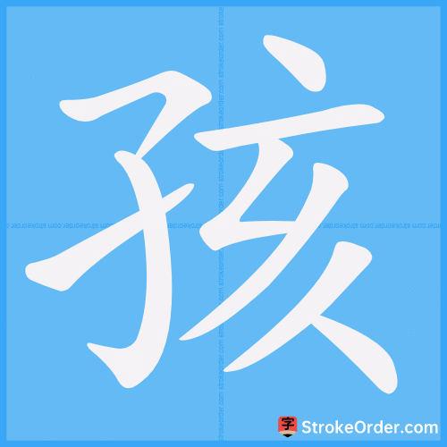 Watch the video of writing the Chinese character "孩", learn the correct stroke order (笔顺) of the character "孩", and master the standard way of writing the character "孩".