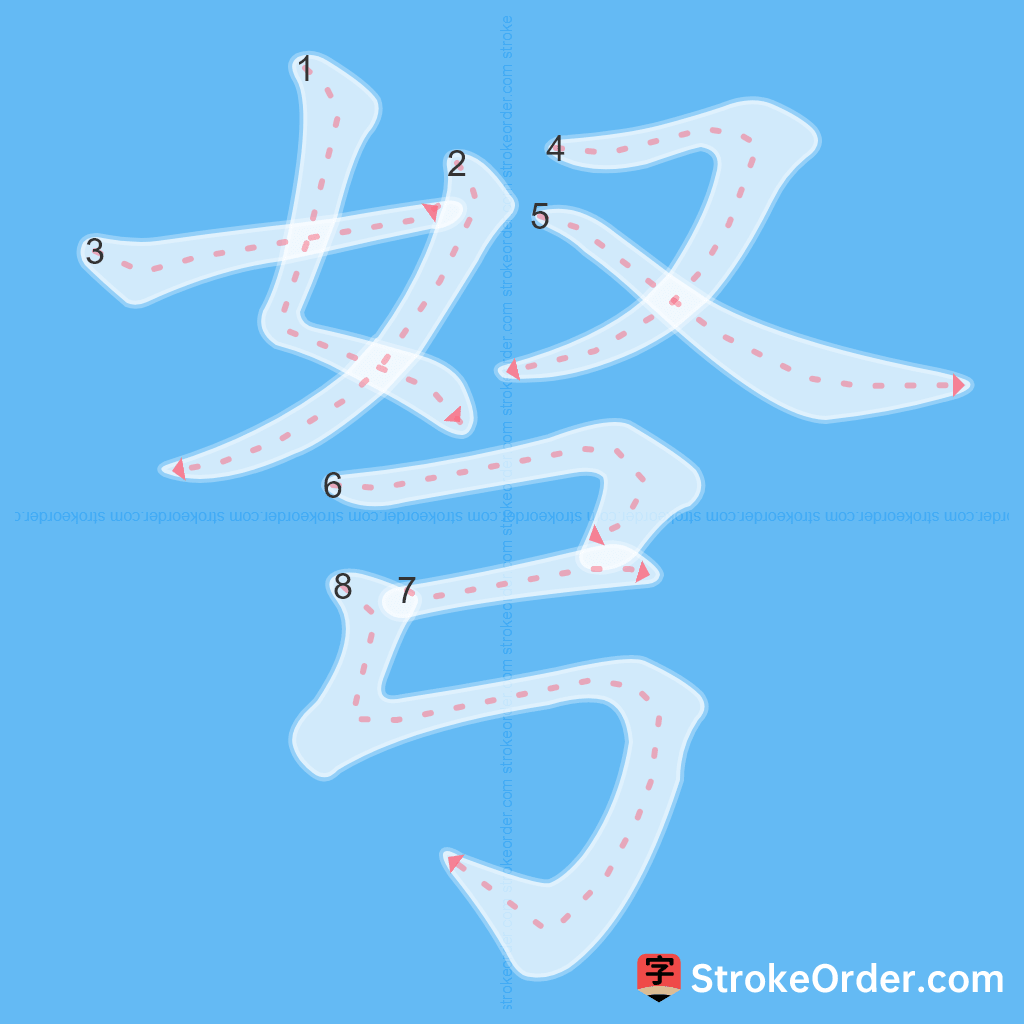 Watch the video of writing the Chinese character "弩", learn the correct stroke order (笔顺) of the character "弩", and master the standard way of writing the character "弩".
