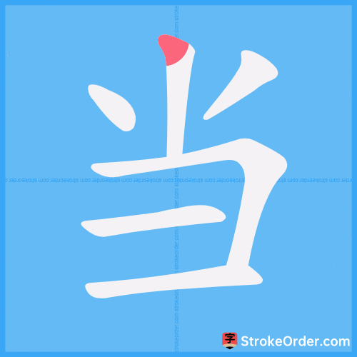 Watch the video of writing the Chinese character "当", learn the correct stroke order (笔顺) of the character "当", and master the standard way of writing the character "当".