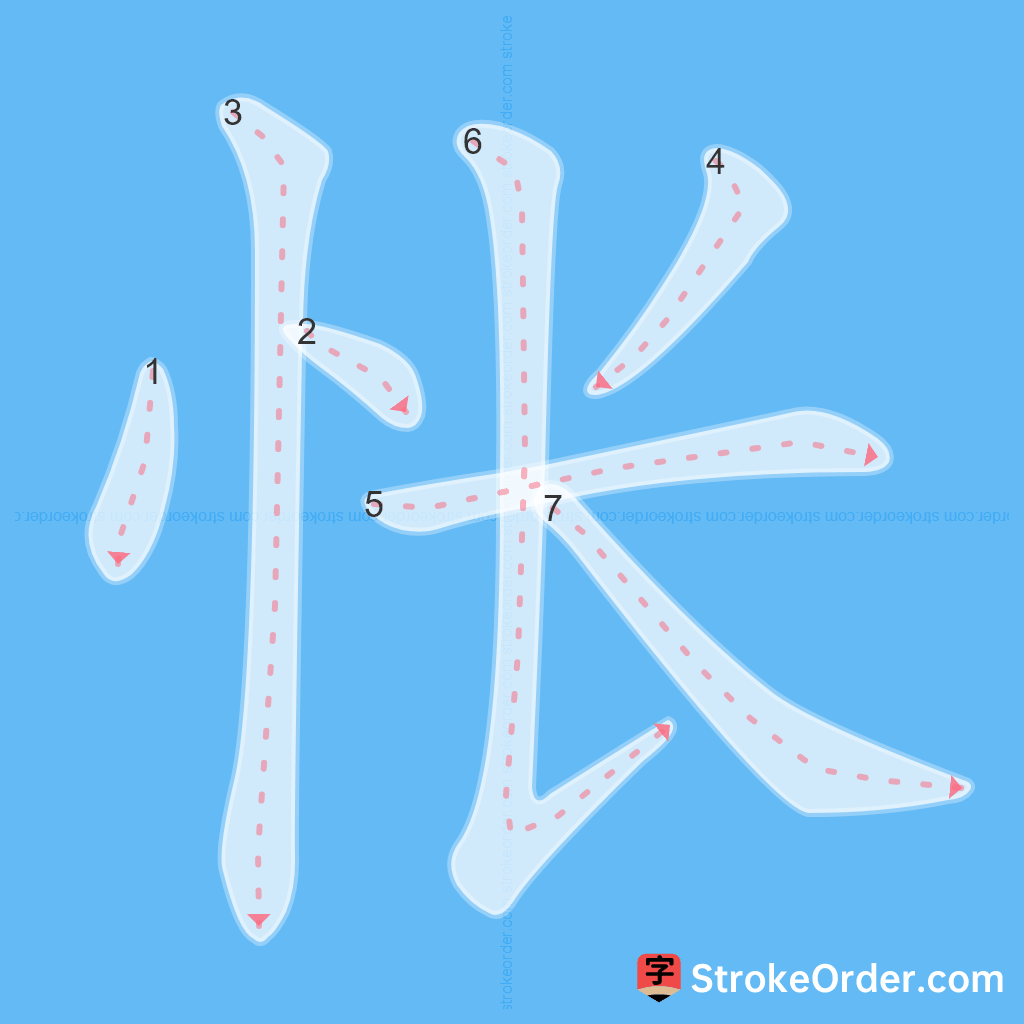Watch the video of writing the Chinese character "怅", learn the correct stroke order (笔顺) of the character "怅", and master the standard way of writing the character "怅".
