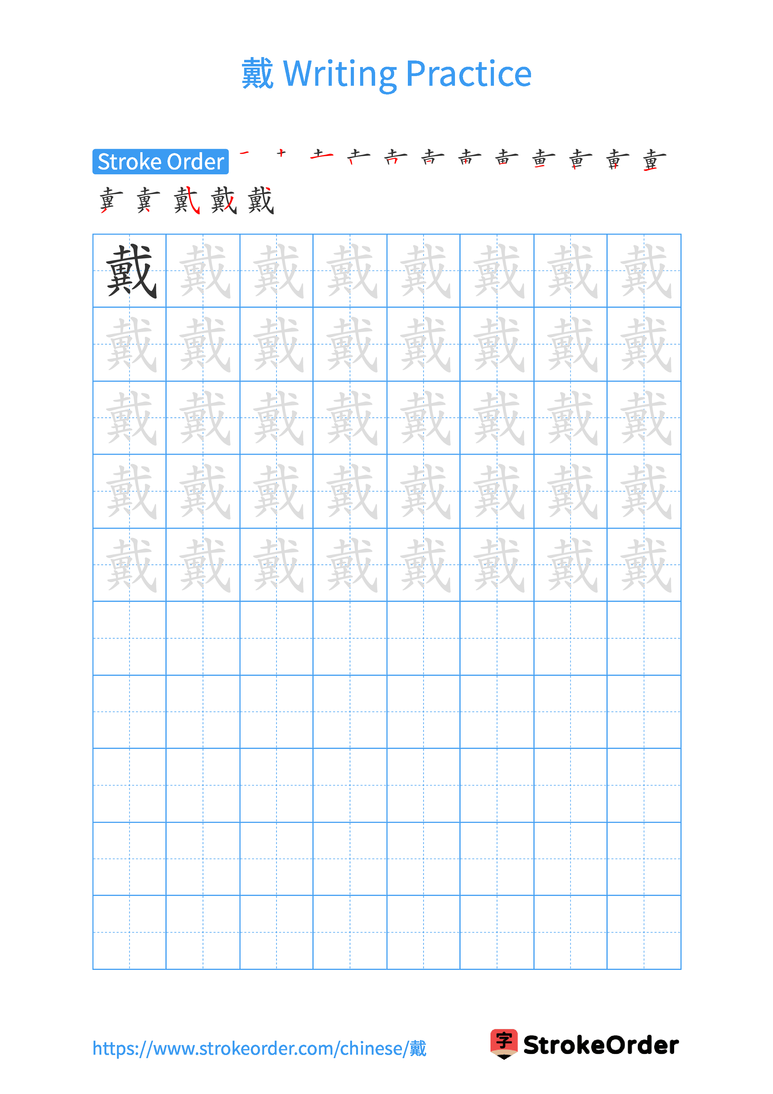 Free Printable Handwriting Practice with Stroke Order: 戴