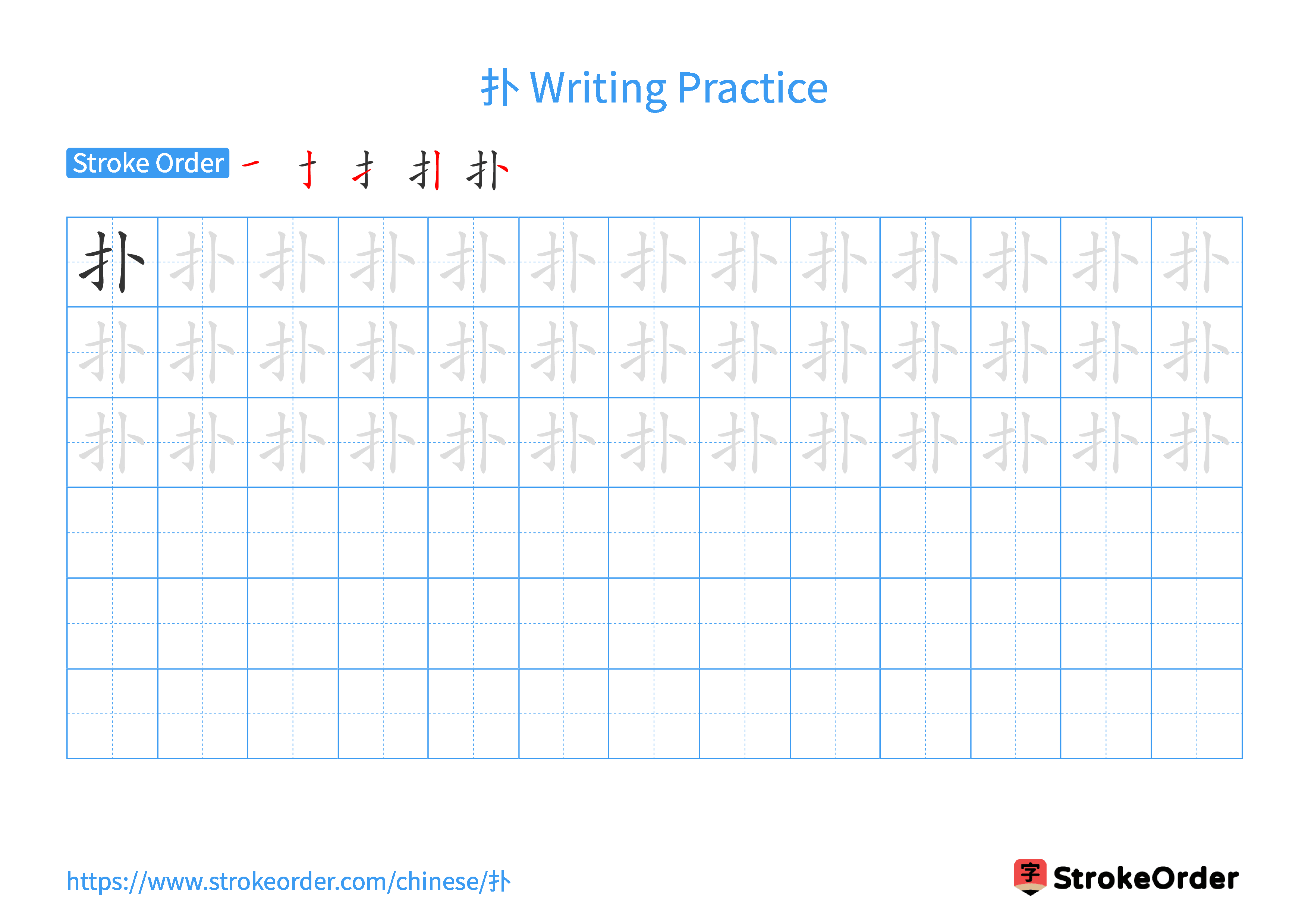 Free Printable Handwriting Practice with Stroke Order: 扑