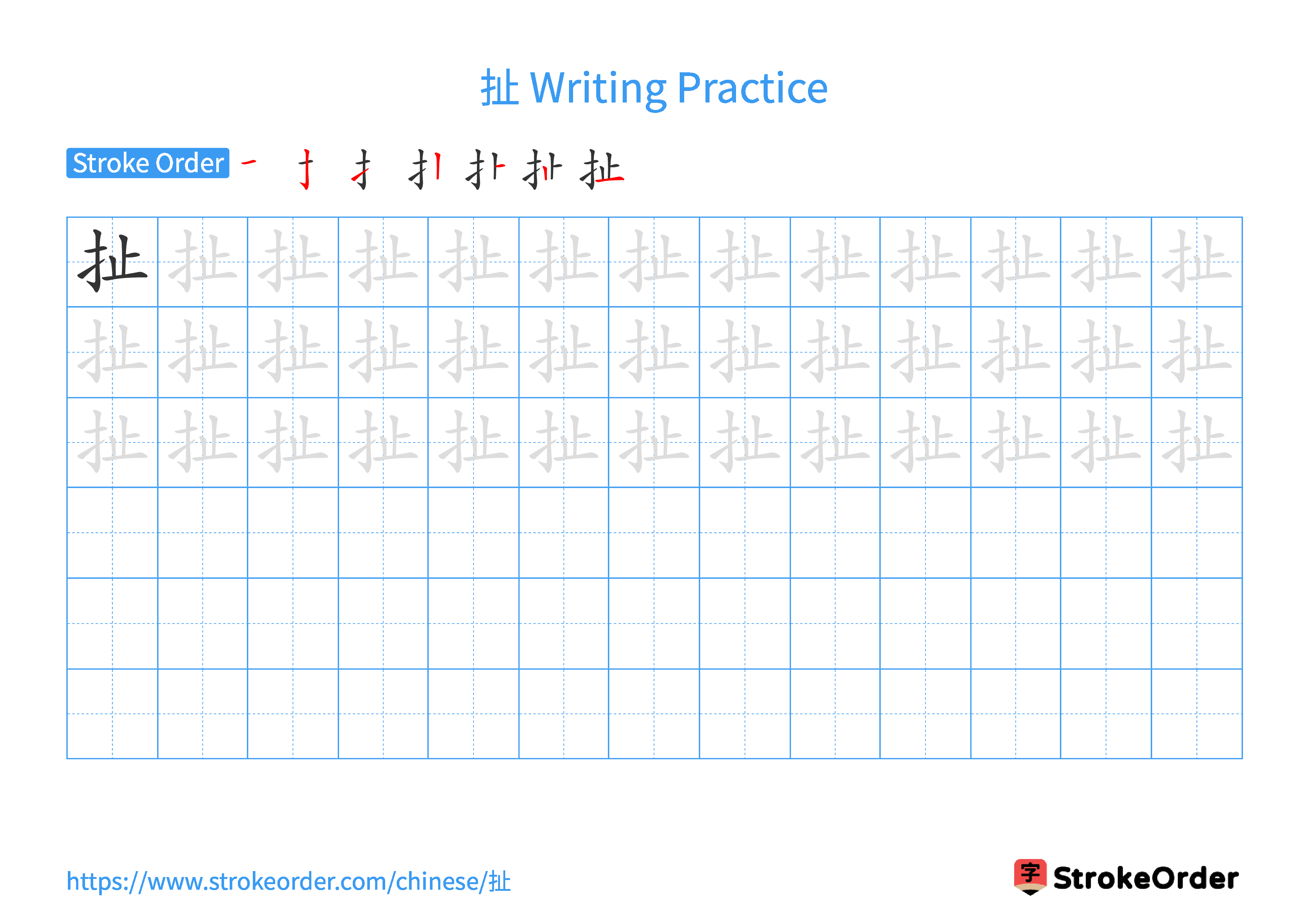 Free Printable Handwriting Practice with Stroke Order: 扯
