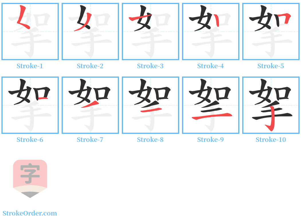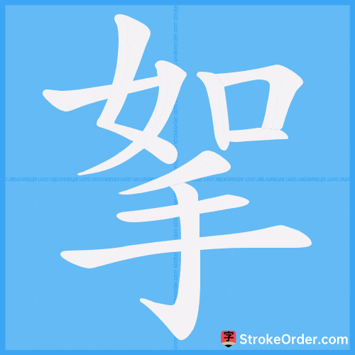 Verb: To tug or pull. "挐" means to tug. In "The Preface for Sending the District Tablets" by Han Yu: "There are those who were born in the region, pledging goodwill, pulling their boats from the South Sea."