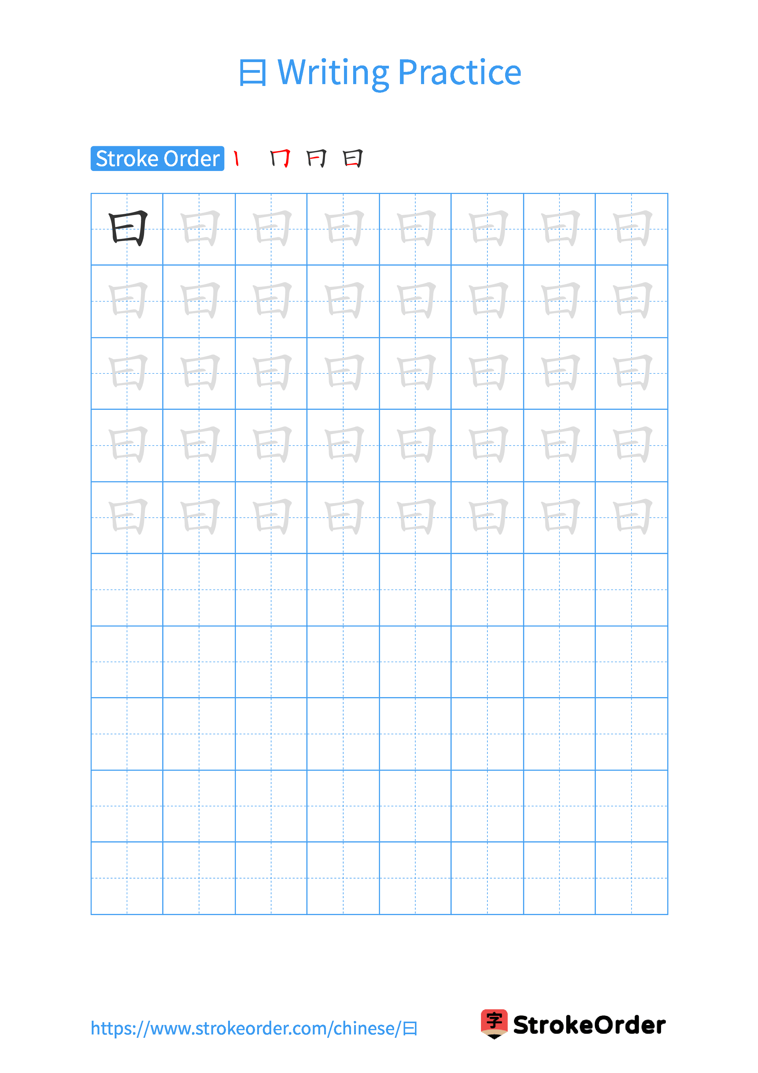 Free Printable Handwriting Practice with Stroke Order: 曰