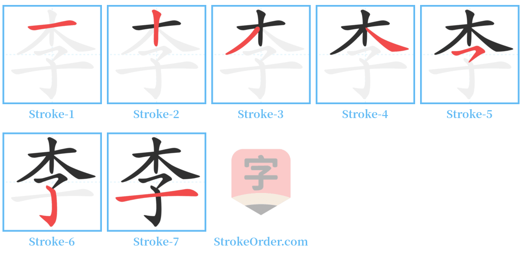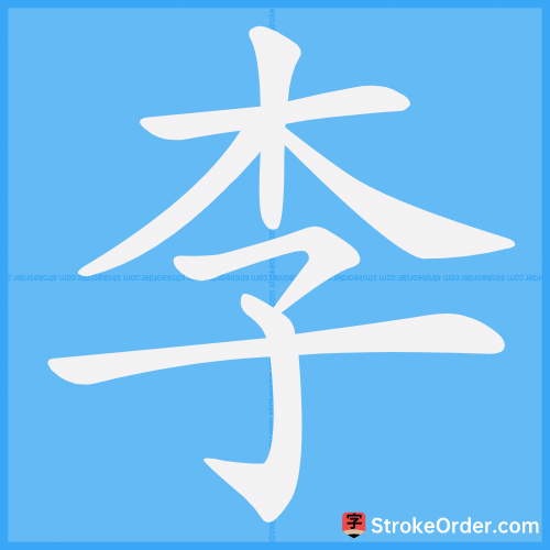 Watch the video of writing the Chinese character "李", learn the correct stroke order (笔顺) of the character "李", and master the standard way of writing the character "李".