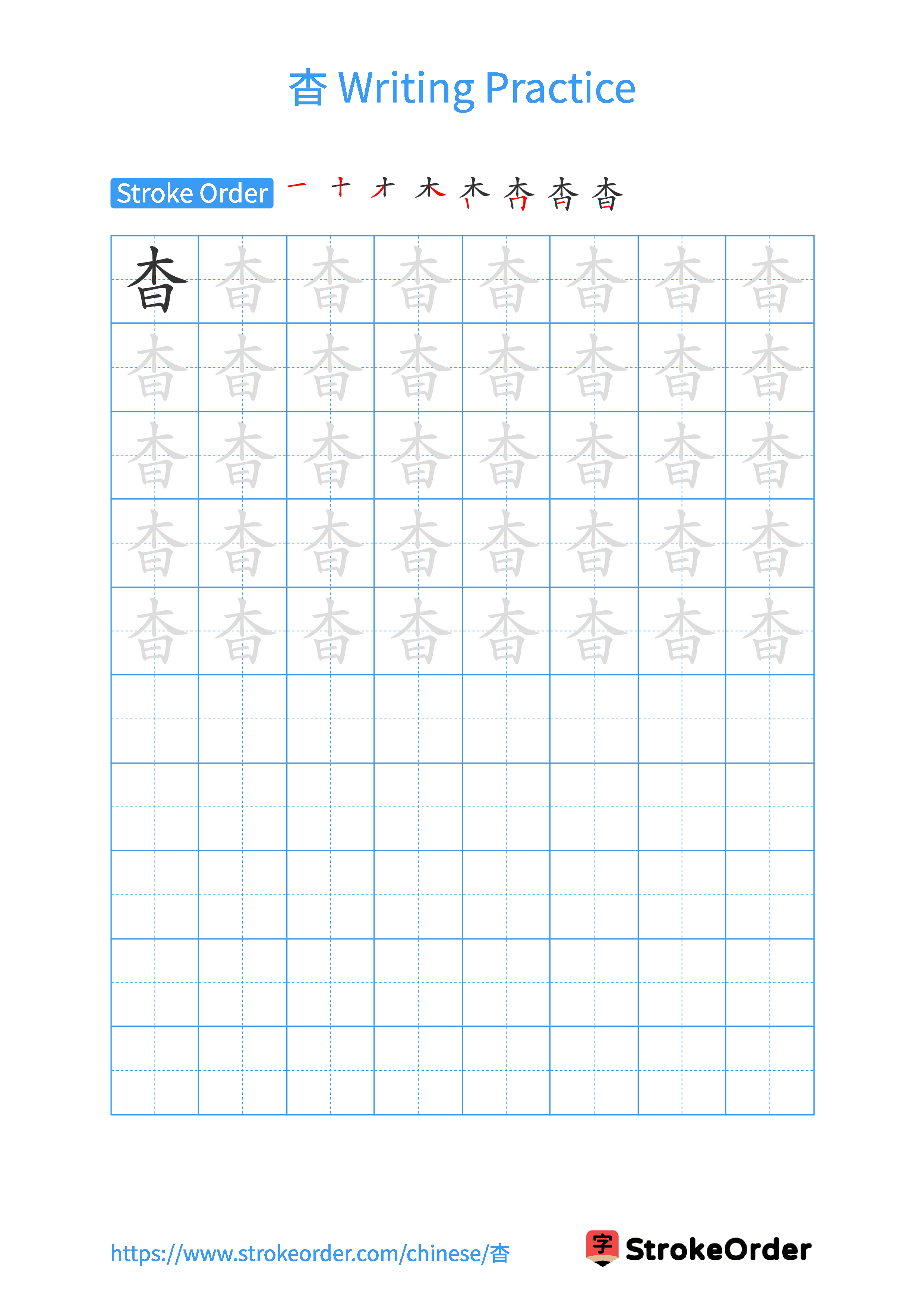 Free Printable Handwriting Practice with Stroke Order: 杳