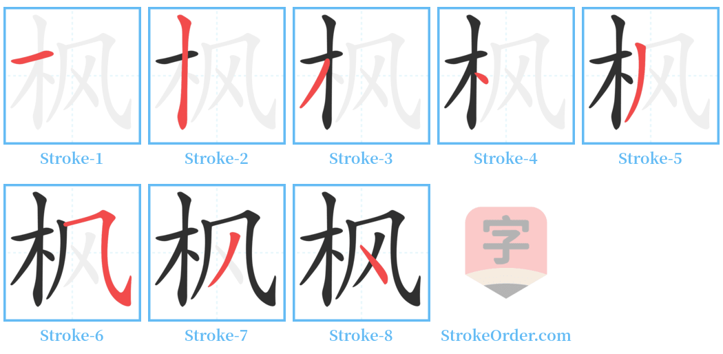 Free Printable Handwriting Practice with Stroke Order: 枫