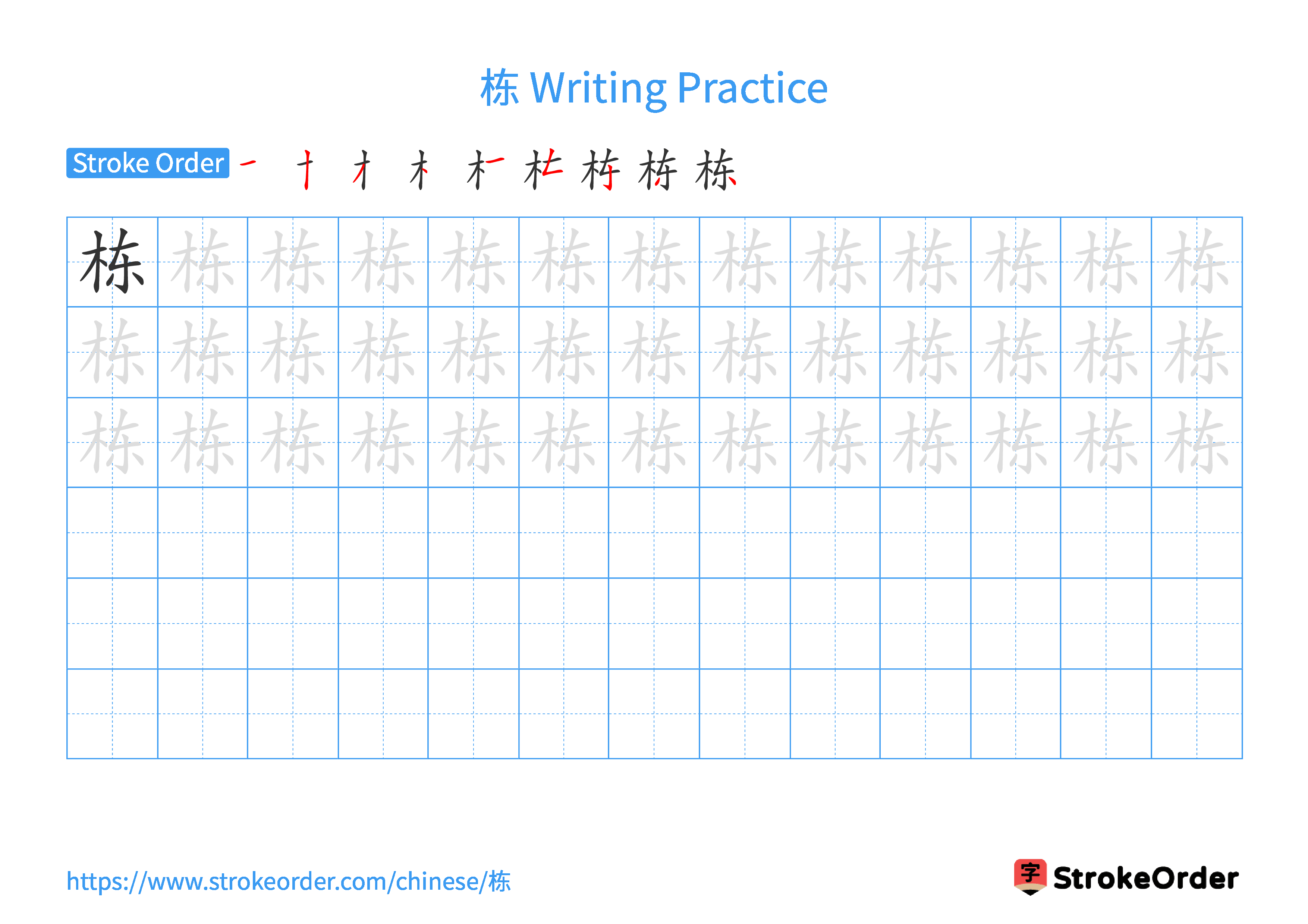 Free Printable Handwriting Practice with Stroke Order: 栋
