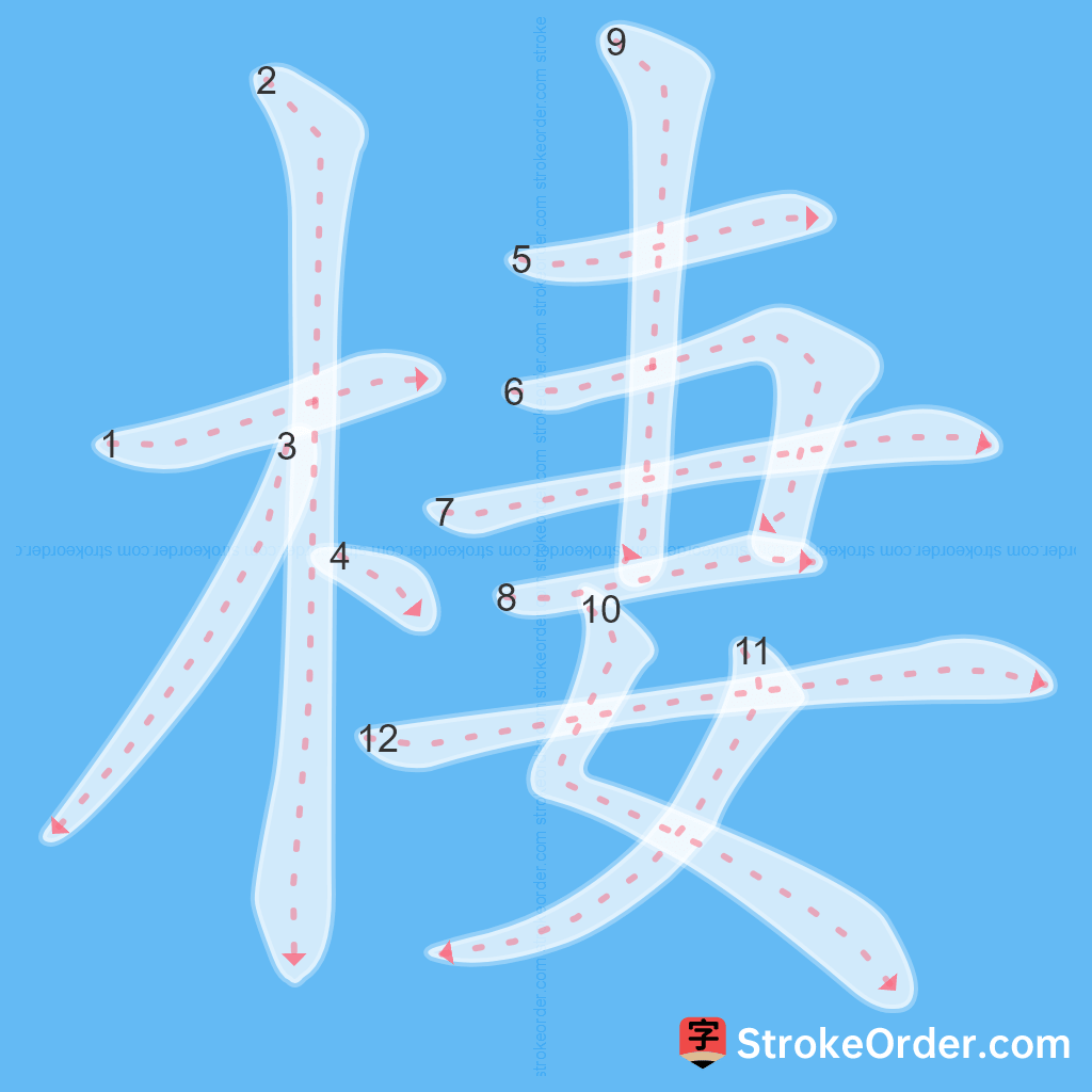 Watch the video of writing the Chinese character "棲", learn the correct stroke order (笔顺) of the character "棲", and master the standard way of writing the character "棲".
