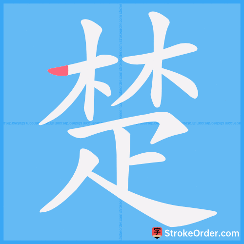 Watch the video of writing the Chinese character "楚", learn the correct stroke order (笔顺) of the character "楚", and master the standard way of writing the character "楚".