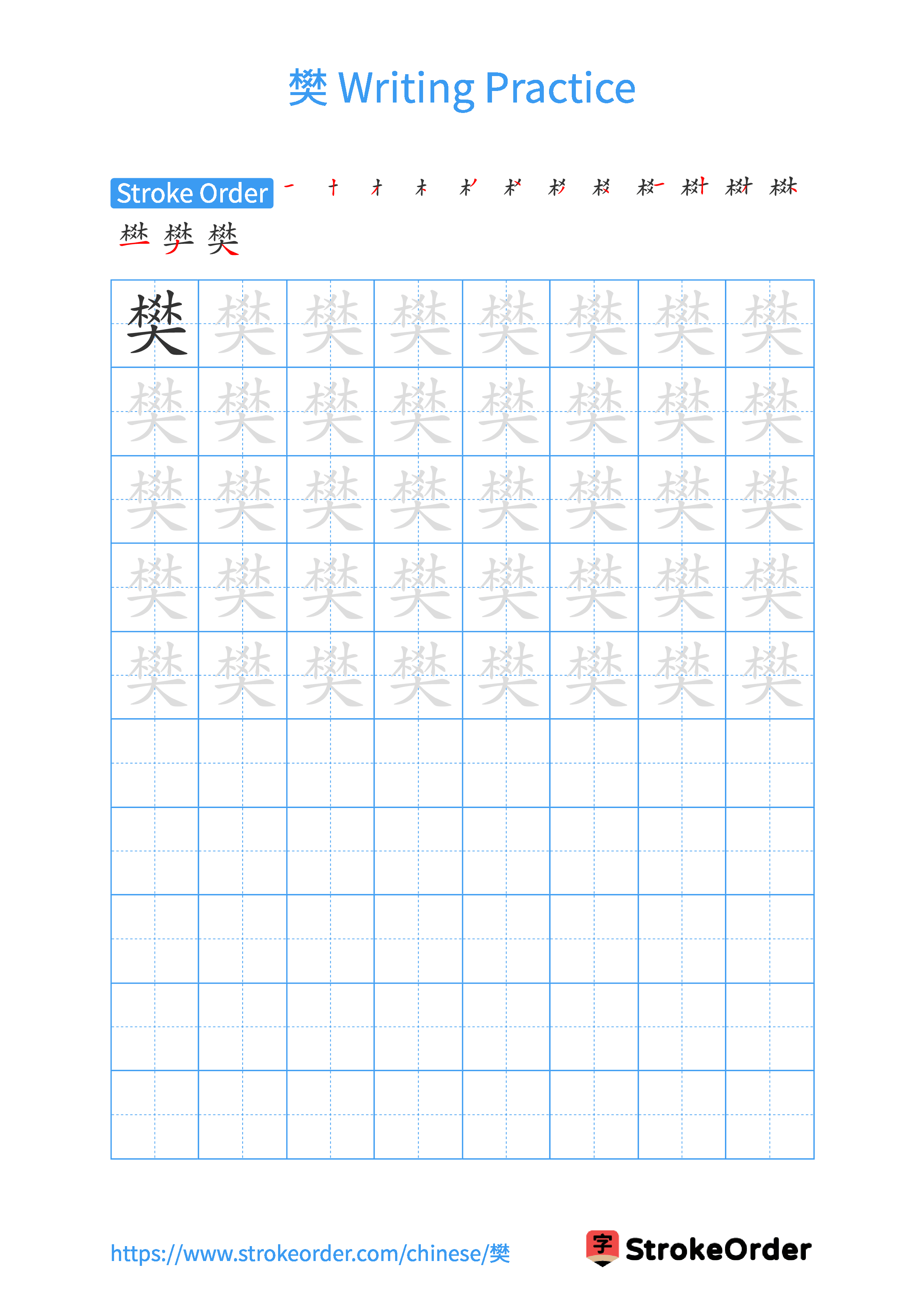 Free Printable Handwriting Practice with Stroke Order: 樊