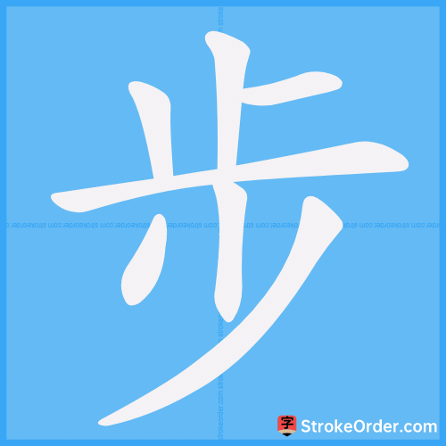 Watch the video of writing the Chinese character "步", learn the correct stroke order (笔顺) of the character "步", and master the standard way of writing the character "步".
