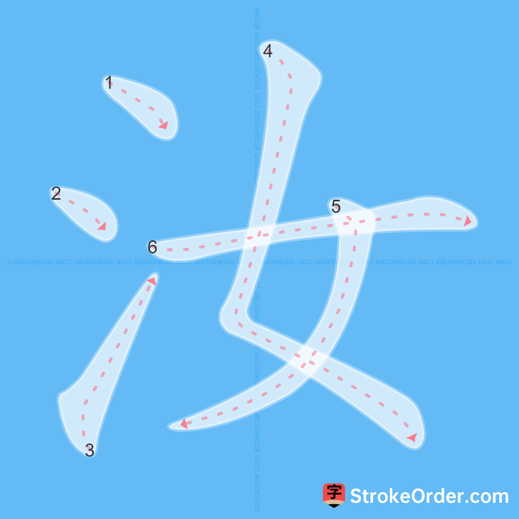 Watch the video of writing the Chinese character "汝", learn the correct stroke order (笔顺) of the character "汝", and master the standard way of writing the character "汝".