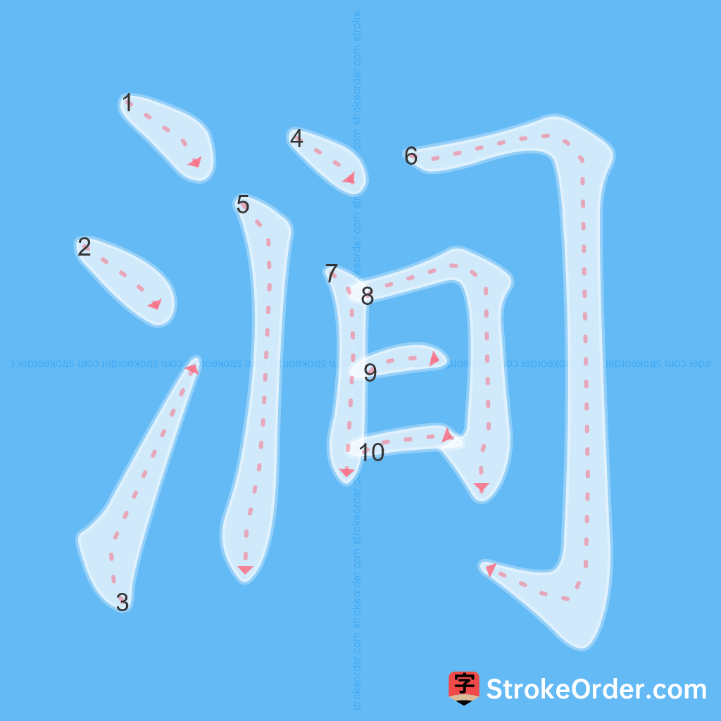 Watch the video of writing the Chinese character "涧", learn the correct stroke order (笔顺) of the character "涧", and master the standard way of writing the character "涧".