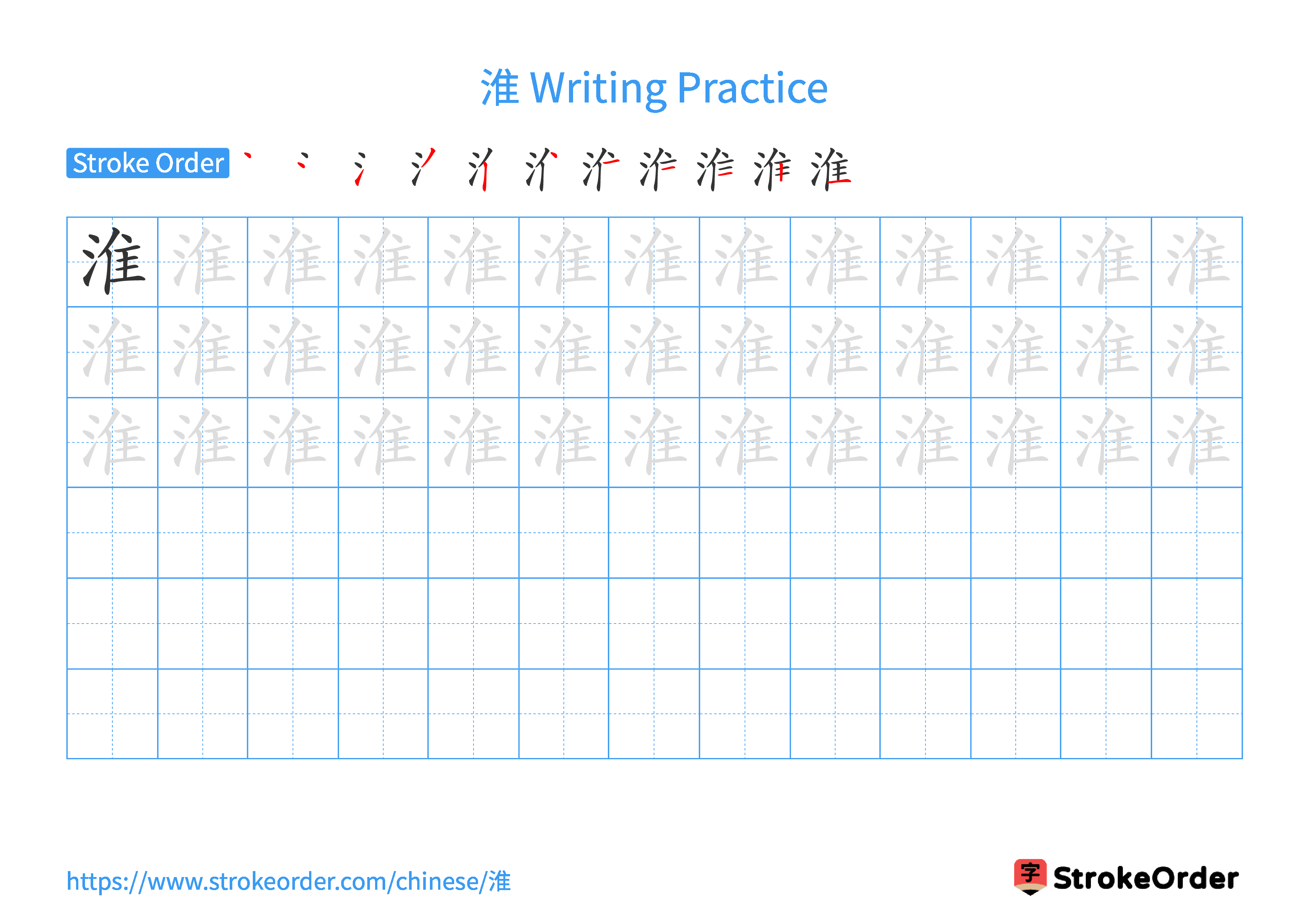 Free Printable Handwriting Practice with Stroke Order: 淮