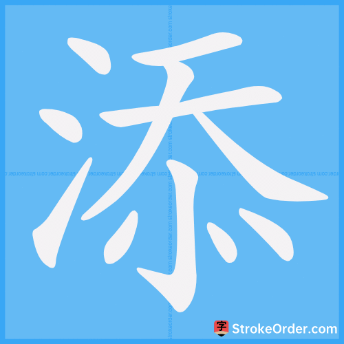 Watch the video of writing the Chinese character "添", learn the correct stroke order (笔顺) of the character "添", and master the standard way of writing the character "添".