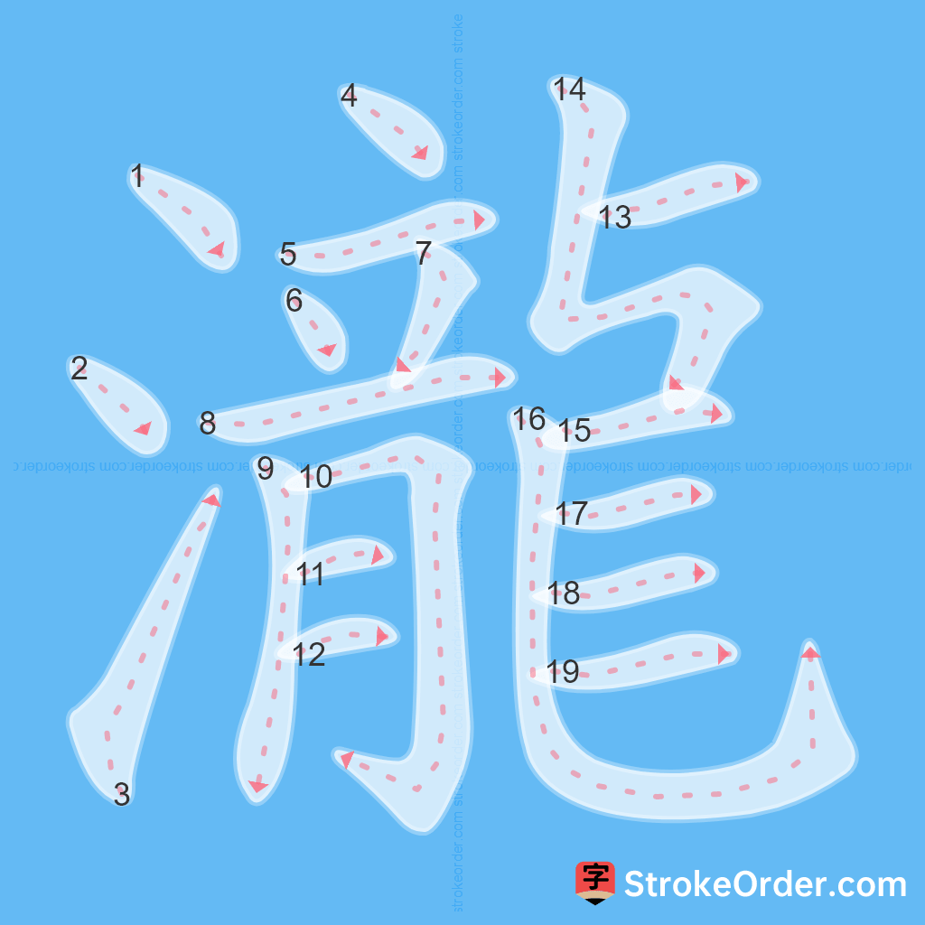 Watch the video of writing the Chinese character "瀧", learn the correct stroke order (笔顺) of the character "瀧", and master the standard way of writing the character "瀧".