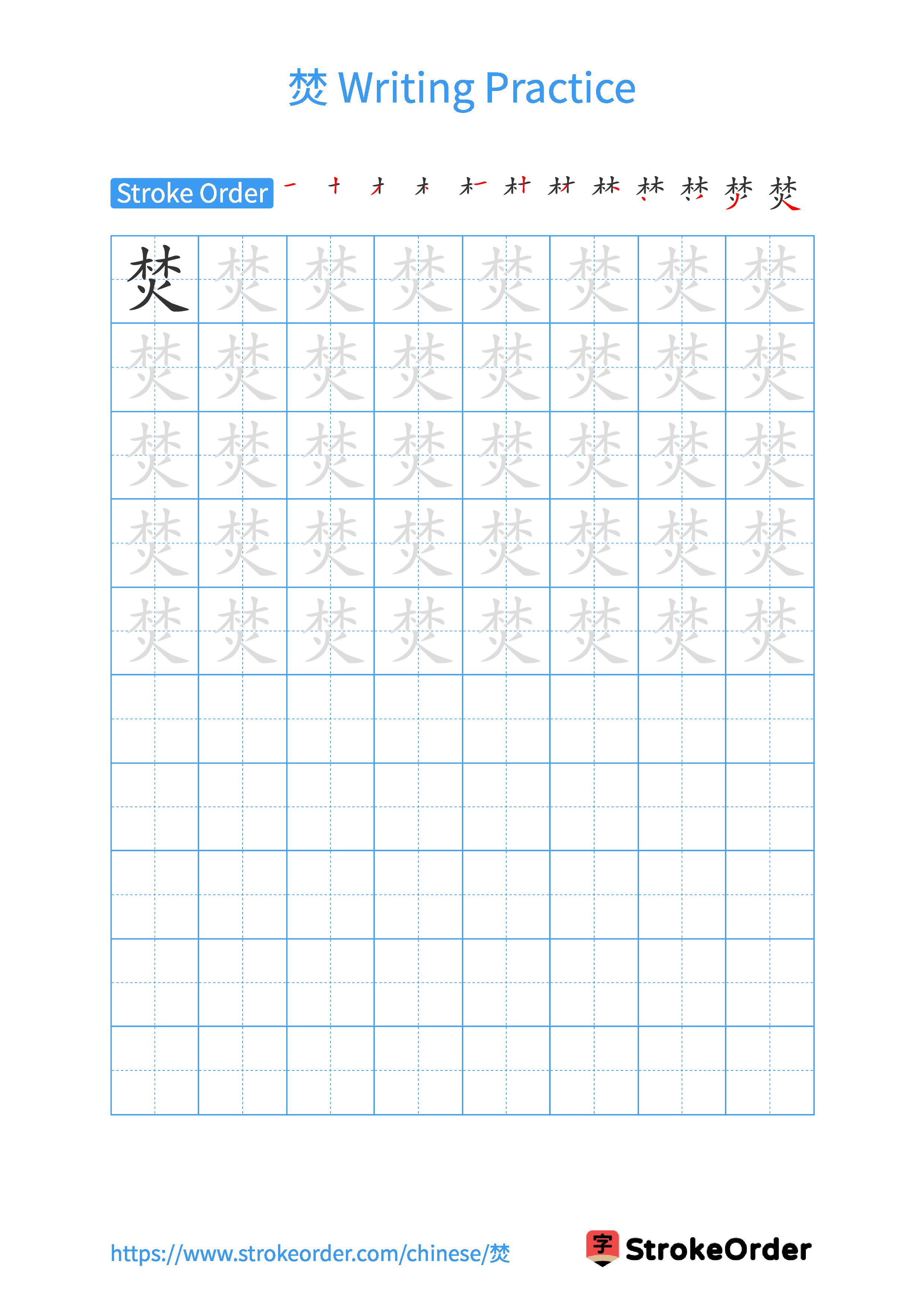 Free Printable Handwriting Practice with Stroke Order: 焚