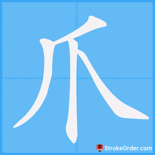 Watch the video of writing the Chinese character "爪", learn the correct stroke order (笔顺) of the character "爪", and master the standard way of writing the character "爪".