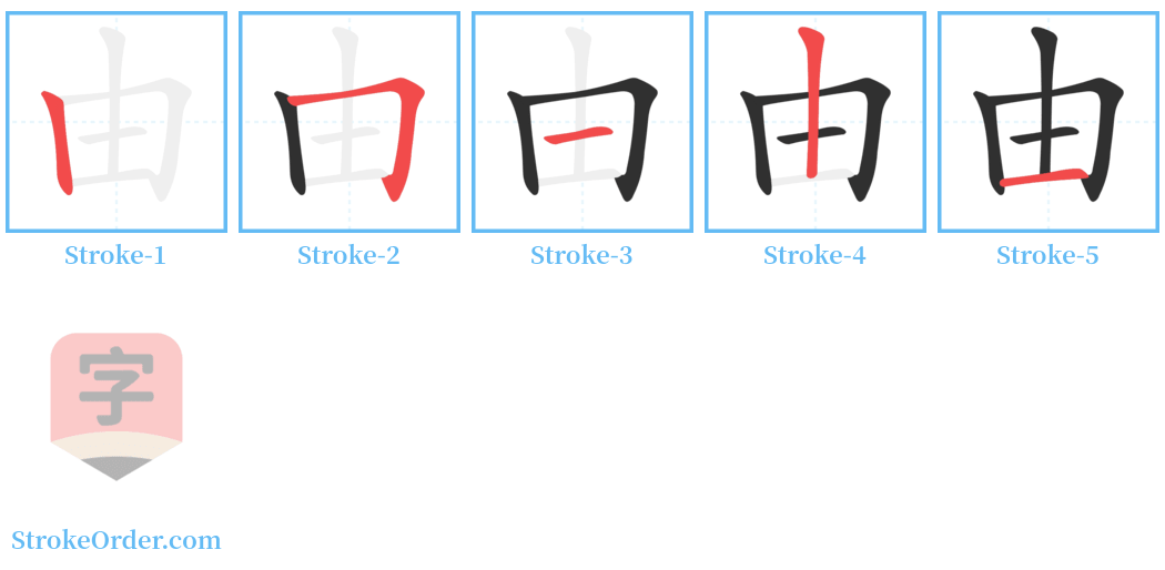 Watch the video of writing the Chinese character "由", learn the correct stroke order (笔顺) of the character "由", and master the standard way of writing the character "由".