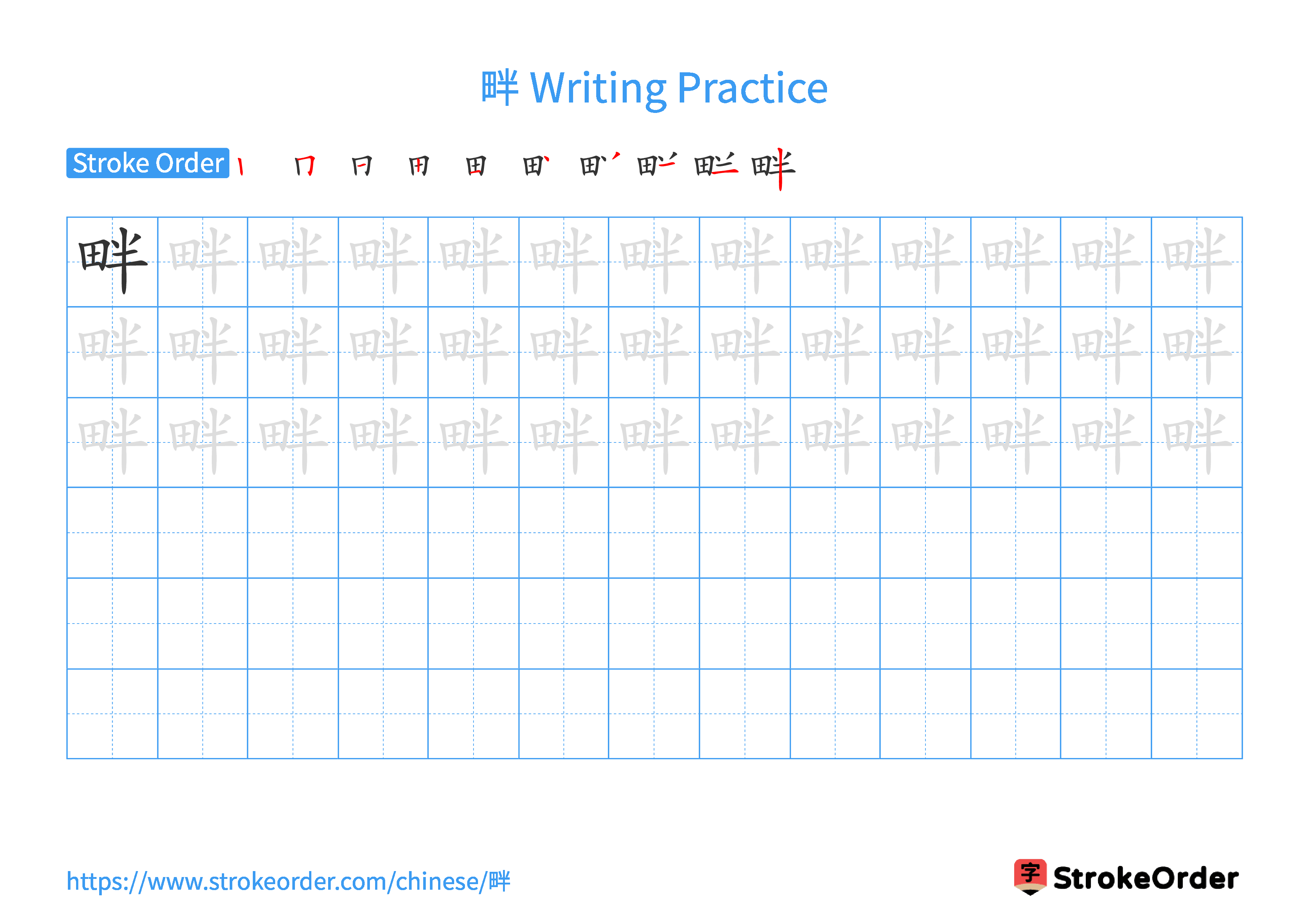 Free Printable Handwriting Practice with Stroke Order: 畔