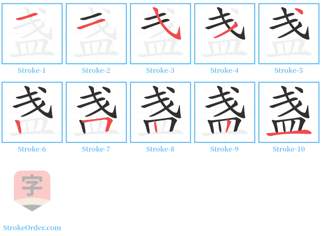 - Etymology: A phonetic compound character made from 皿 (dish) and 戔 (jiān) indicating its relation to utensils.